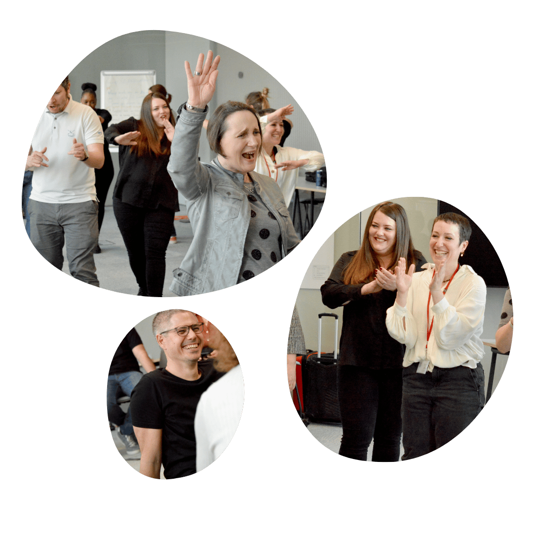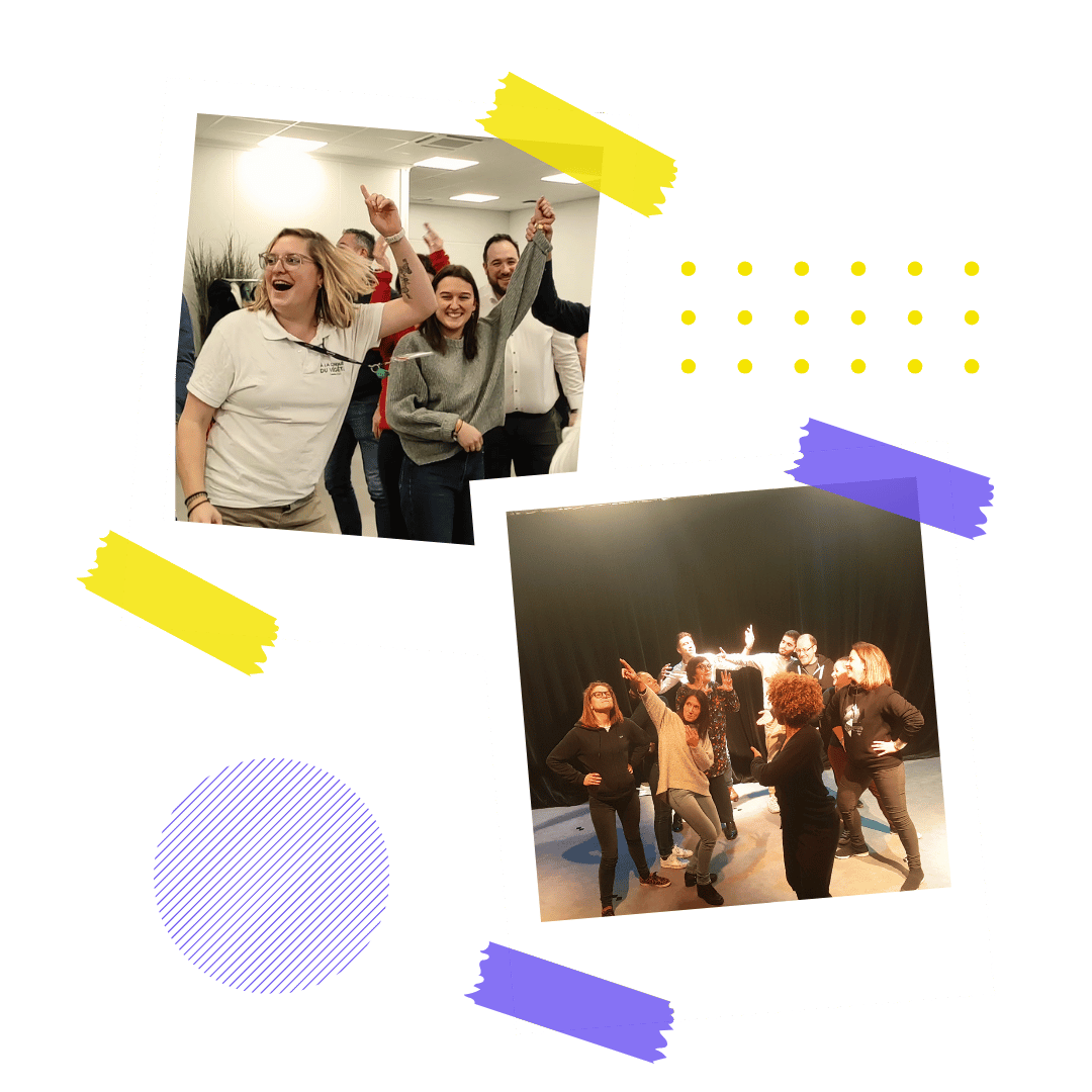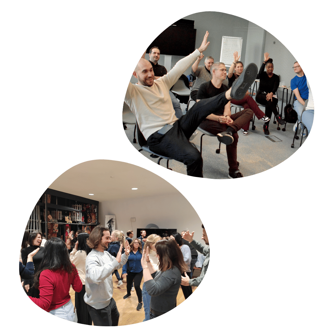 Nos ateliers de cohésion, basés sur l'improvisation théâtrale, répondent à ces enjeux en créant des moments de partage authentiques. Nous aidons les collaborateurs à améliorer leurs relations, à lâcher prise et à muscler leur adaptabilité. À travers le jeu, ils cultivent des soft skills essentiels comme l'écoute active, l'empathie, et la créativité, ce qui renforce le lien au sein de l'équipe.